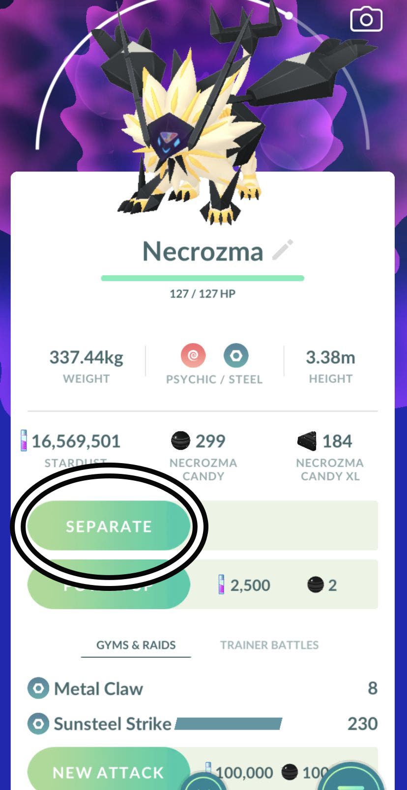 سيبقى Dusk Mane Necrosma وDawn Wings Necrosma معًا حتى نهاية الوقت، إلا إذا قررت فصلهما في معبد البوكيمون. يعد هذا مفيدًا بشكل لا يصدق لأنك لا تضطر إلى إنفاق الكثير من حلوى Necromsa وCosmack في كل مرة تريد فيها استخدام Fusion، لكن الأمر يصبح معقدًا بعض الشيء إذا كنت تريد استخدام Necrosma أو Solgaleo أو Lunala بشكل فردي. بوكيمون. لحسن الحظ، فإن عملية تقسيم Dusk Man أو Dawn Wings Necrosma مرة أخرى إلى بوكيمونين سهلة للغاية.