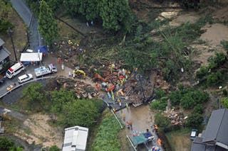 صورة جوية تظهر تأثير الانهيار الأرضي على بعد مئات الأميال شرق كيوشو